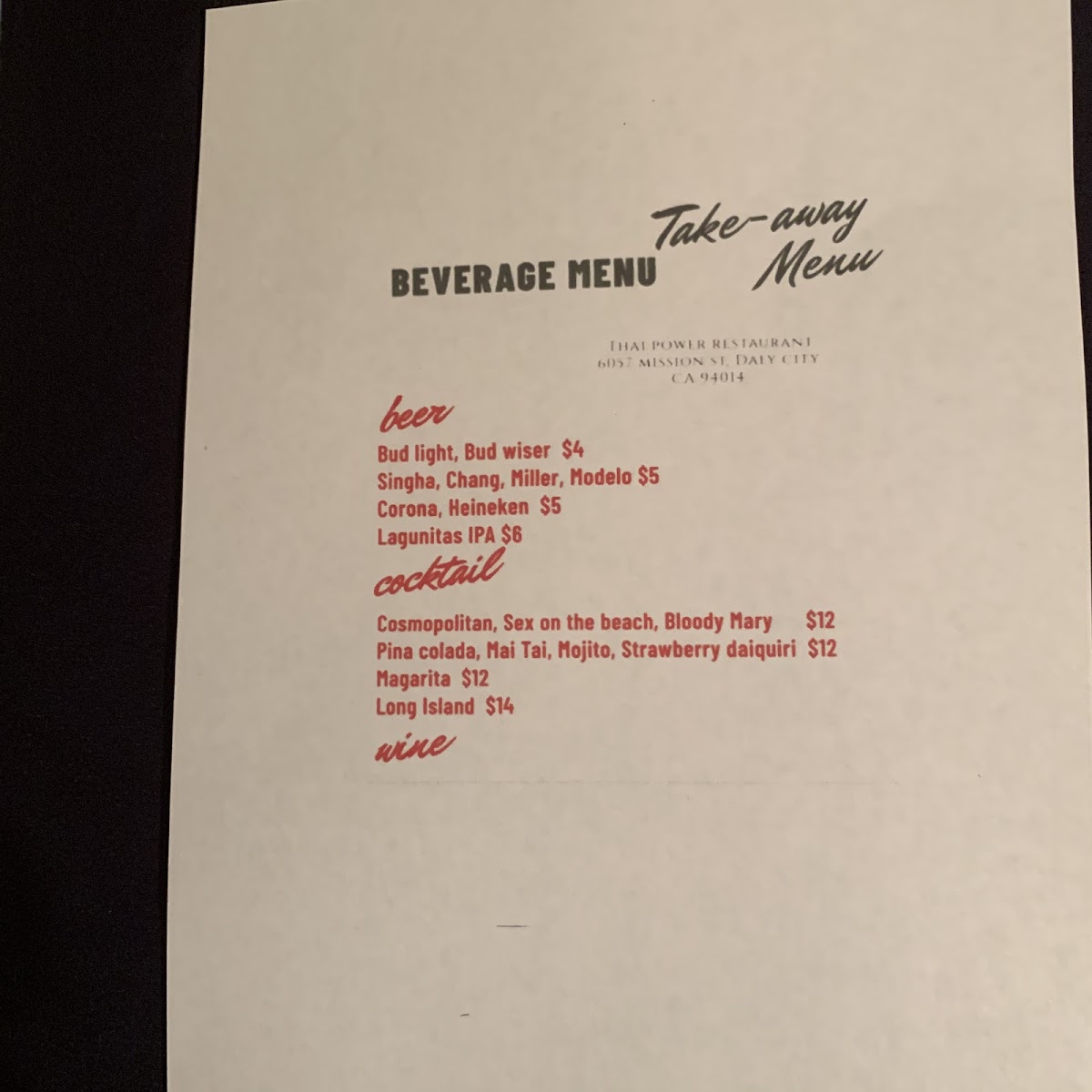 The menu at Thai Power Restaurant offers a diverse selection of traditional Thai dishes that are both flavorful and satisfying. For appetizers, guests can enjoy crispy Fried Tofu, savory Satay Chicken, or delicious Tod Mun Thai Egg Rolls and Veggie Spring Rolls, providing a perfect start to any meal. The Thai salads are also a highlight, with refreshing options like Seafood Salad, tangy Pla Goong, crispy Calamari Salad, and the zesty Beef Salad and Larb Gai. Soup lovers can indulge in comforting choices such as Spicy & Sour Soup, the rich Spicy & Sour Coconut Milk Soup, or the hearty Thai Spicy Seafood Soup and Gang Jerd Woon Sen (Mild). When it comes to curries, there's something for everyone, including the aromatic Gang Kiew Wan, creamy Gang Ka Ree, spicy Gang Dang, rich Gang Mas-Mun, and savory Gang Panang. For a slight upcharge, shrimp can be added to any curry for an extra burst of flavor. The variety of options ensures that diners will find something to suit their tastes, making for a memorable and satisfying dining experience.
